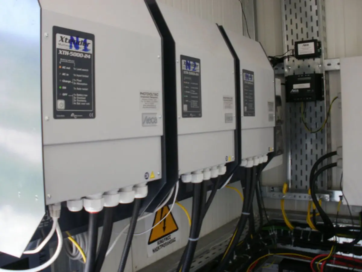 The system consist of SolarWorld AG solar modules, Steca and Outback charge controllers and Steca inverters.